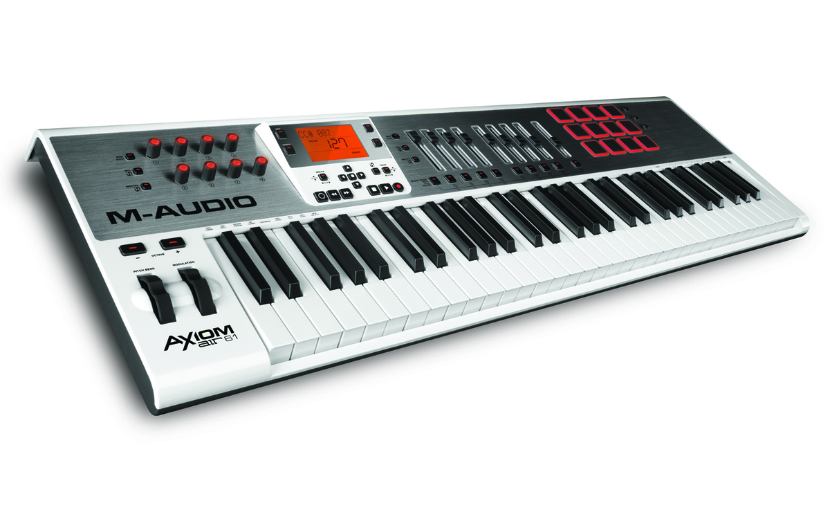 Take command of your studio while achieving higher levels of musical expression with Axiom AIR 61 from M-Audio. Offering unprecedented control, Axiom AIR 61 brings together unmatched ease-of-use plus empowering software to form the ultimate studio centerpiece. Get inspired by 61 synth-action keys—with aftertouch. The illuminated pads are velocity sensitive and even respond to pressure. Experience total hands-on control of your sessions using assignable LED lit buttons and rotary encoder knobs, long-throw faders, plus an array of dedicated transport and software navigation buttons. HyperControl® interactive controller mapping unites your hardware and software so you can start working faster. Completing this powerful package is the complementary software selection: Ignite by AIR music creation software. Ignite delivers a comprehensive path for transforming the ideas in your head into a finished piece of music.