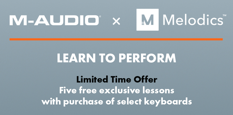 For a Limited time join over 100,000 musicians building their skills with Melodics. Melodics is a desktop app that teaches you to play and perform with MIDI keyboards, pad controllers, and drums. Whether your just starting out or a seasoned pro looking to learn advanced techniques Melodics grows with you. It’s free to download upon registration of your controller, and comes with over 60 free lessons (Including Five Exclusive to M-Audio) to get you started!