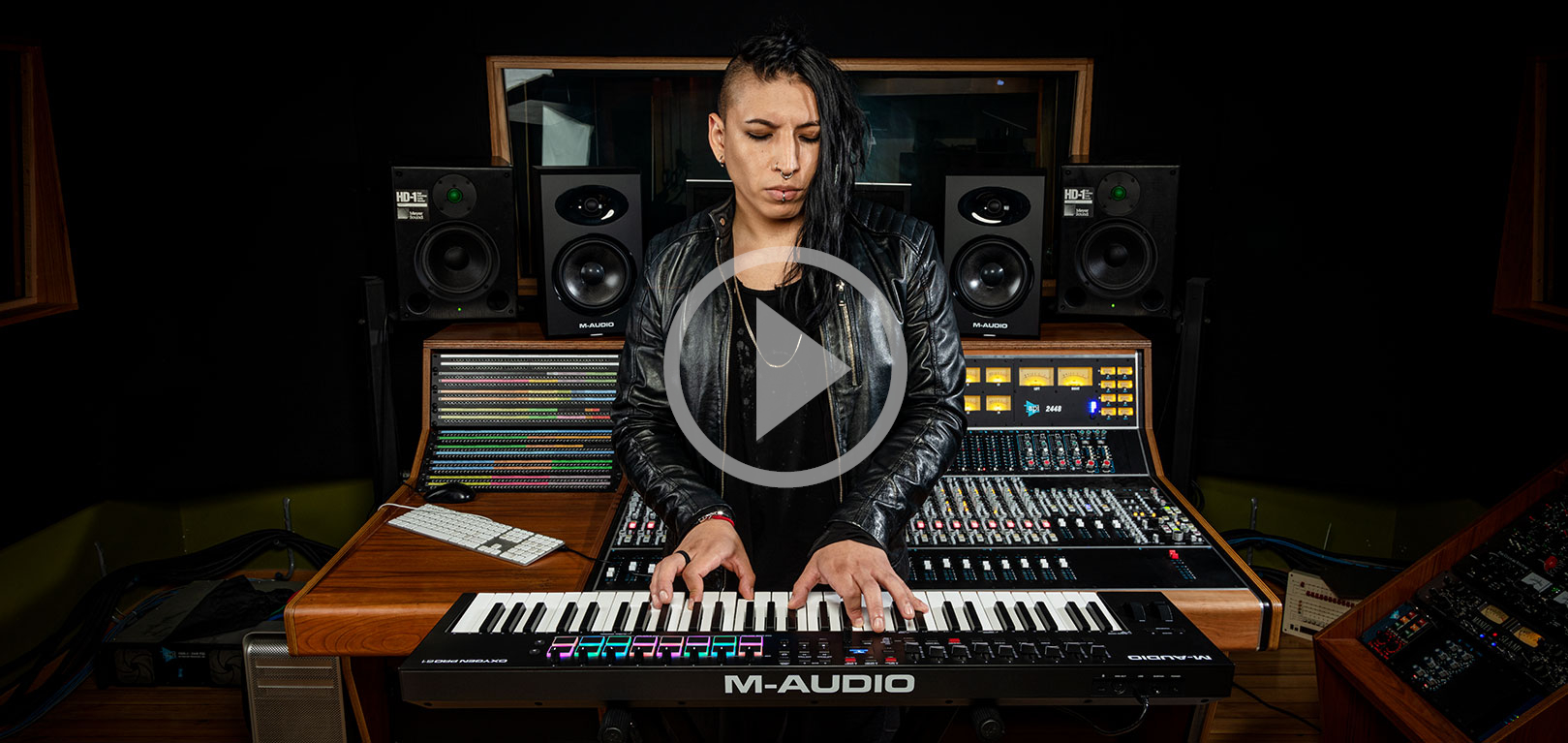 It’s simple to use the Oxygen Pro 61 controller with any DAW with the Oxygen Pro 61’s automatically mapped controls such as Transport, Faders, Channel controls (Record Arm, Solo, Mute, and Select), Pan controls and more. Whether you use Ableton, Pro Tools, MPC Beats, Cubase, Logic, Studio One or any other major DAW, just select your DAW in the Oxygen Pro 61 and select the correct configuration in your DAW, and the Oxygen Pro 61’s controls will be completely integrated into your DAW! It also instantly maps to all the virtual instruments included with the Oxygen Pro 61 (Velvet, Mini Grand, Hybrid 3, TubeSynth, Electric, Bassline). These world-class Air Music Tech plugins can be fully controlled by the Oxygen Pro 61 and used in real-time as you create and mix your music.