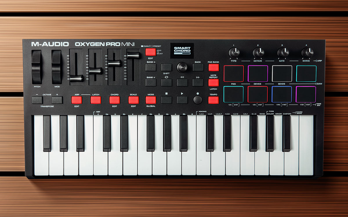 The Oxygen Pro Mini is a powerful, 32-key USB powered MIDI controller that allows you to create the music you want, wherever you want! The new Oxygen Pro controllers open up worlds of expression and creativity and make bringing your production ideas to life more seamless than ever. Taking feedback from users and artists alike, these controllers are the ultimate studio and live performance tools, allowing you to keep your focus on creating music—not programming your software. It doesn’t matter if you want to create music on the go or in the studio, the M-Audio Oxygen Pro series is perfectly flexible for your workflow.